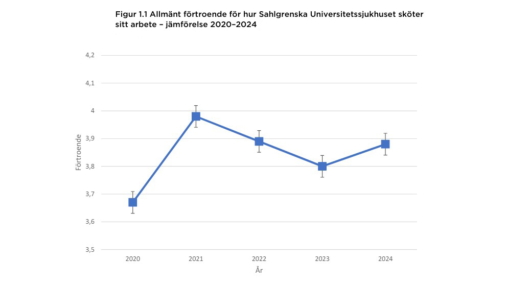 Vi har sett en ökning i allmänhetens förtroende för sjukhuset, där våra medarbetares kompetens och bemötande lyfts fram i undersökningen som SOM-institutet vid Göteborgs universitet genomfört. Det ger oss både stolthet och motivation att fortsätta förbättra vården.