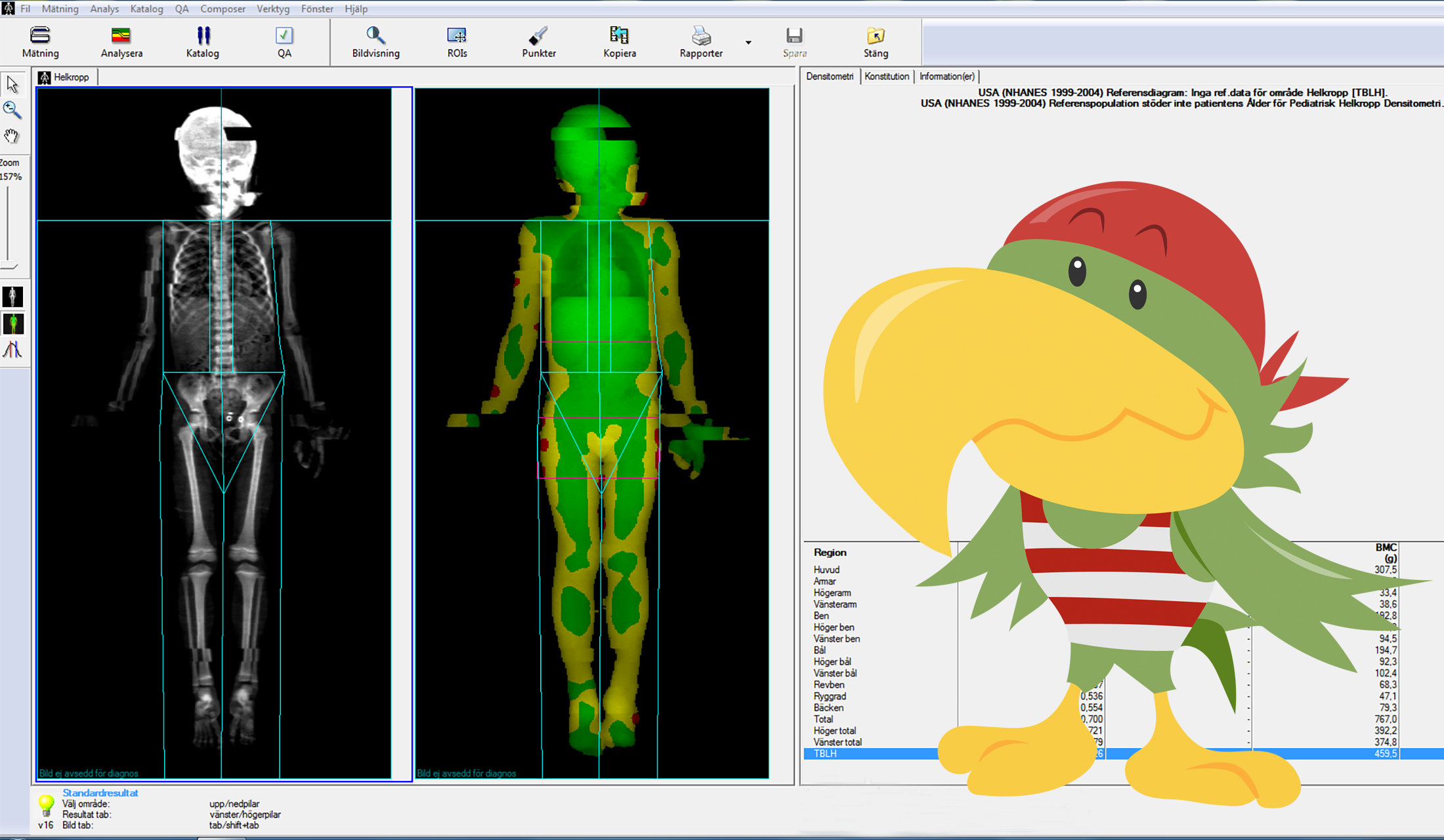Nu rör sig DXA:n sakta ovanför kroppen.