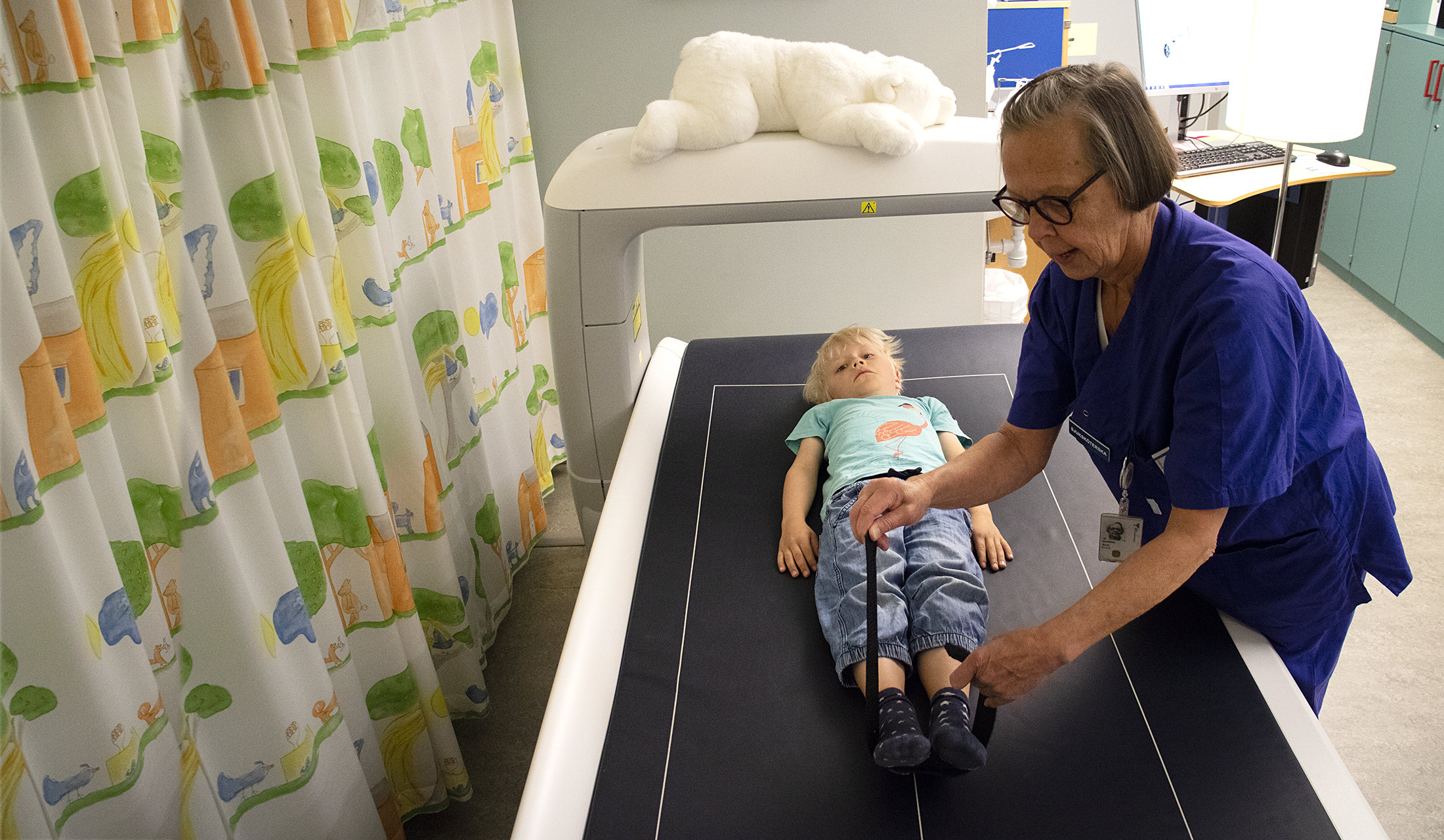 Nisse har kommit till DXA-mottagningen för att göra en mätning. Anne berättar att Nisse ska få ligga alldeles still medan apparaten rör sig ovanför honom när mätningen görs.