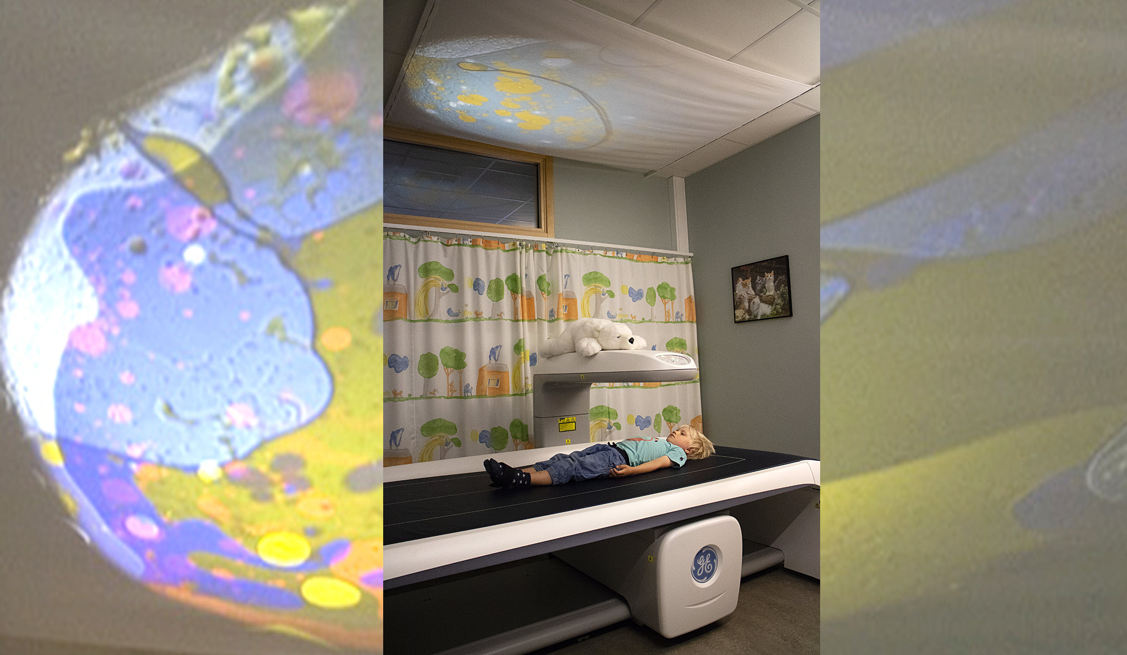 Nisse lyssnar på musik och tittar på mönstret som rör sig i taket. Undersökningen tar några minuter.