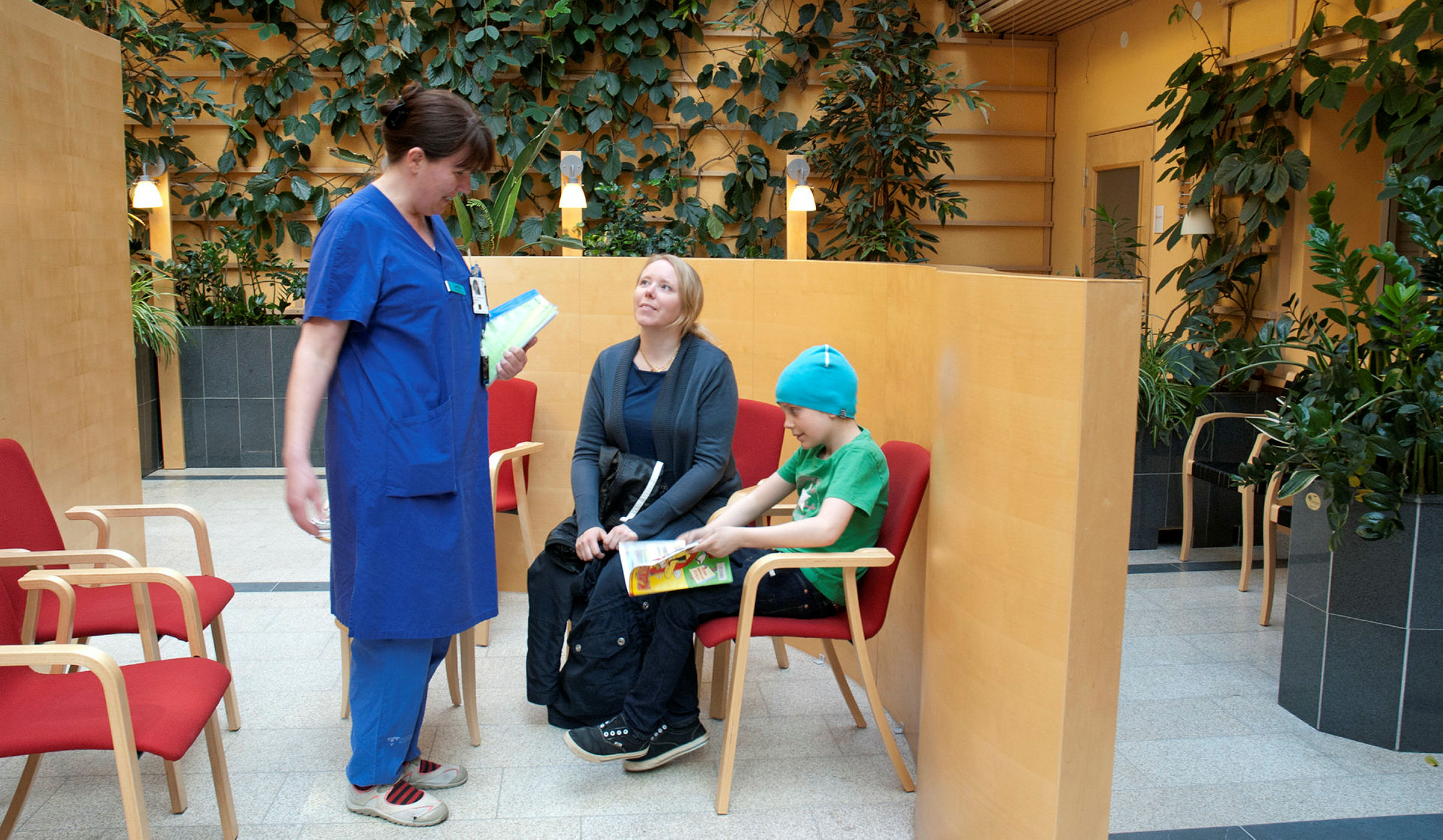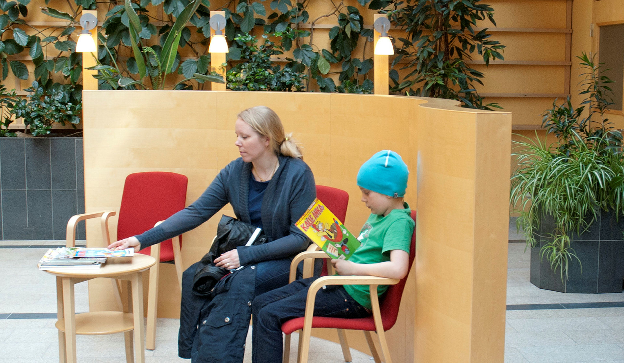 3 av 18Han tar med sig tidningen och sätter sig med mamma och väntar på sin tur.